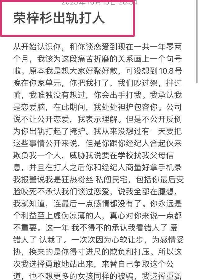 女友指控他殴打自己到骨折 现在很多演员在大学期间就开始谈恋爱了,这对于娱乐圈来说,已经是司空见惯的事情,但是这一次荣梓杉谈的恋爱可不是一般。