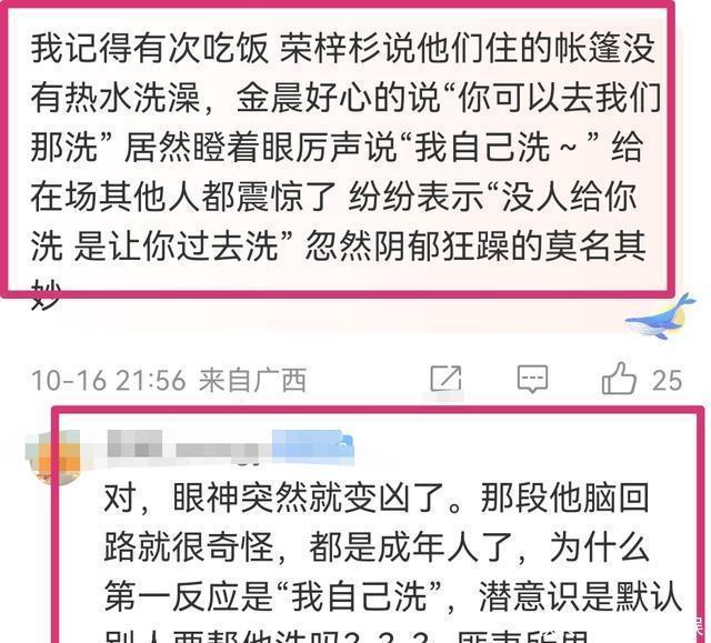 他的意思就是想要金晨帮他拎包,他一个男孩子又是后辈,可以说在这一个举动将没情商体现的淋漓尽致了。