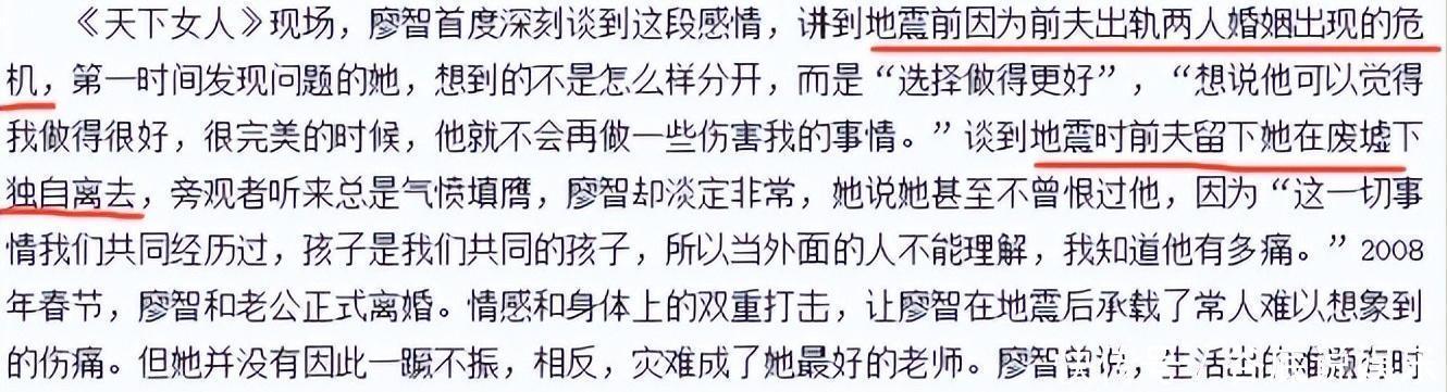 前言2008年汶川地震,廖智被埋26小时后虽成功被救,但却痛失自己双腿和襁褓中的女儿,丈夫也在此甩出离婚协议、弃她而去。本以为廖智会就此倒下,没想到17年后的她早已浴火重生,不仅遇到自己的挚爱,还在近期传来四胎的喜讯,令人惊喜。廖智是怎么做到凤凰涅槃的?如今过着怎样的幸福生活?